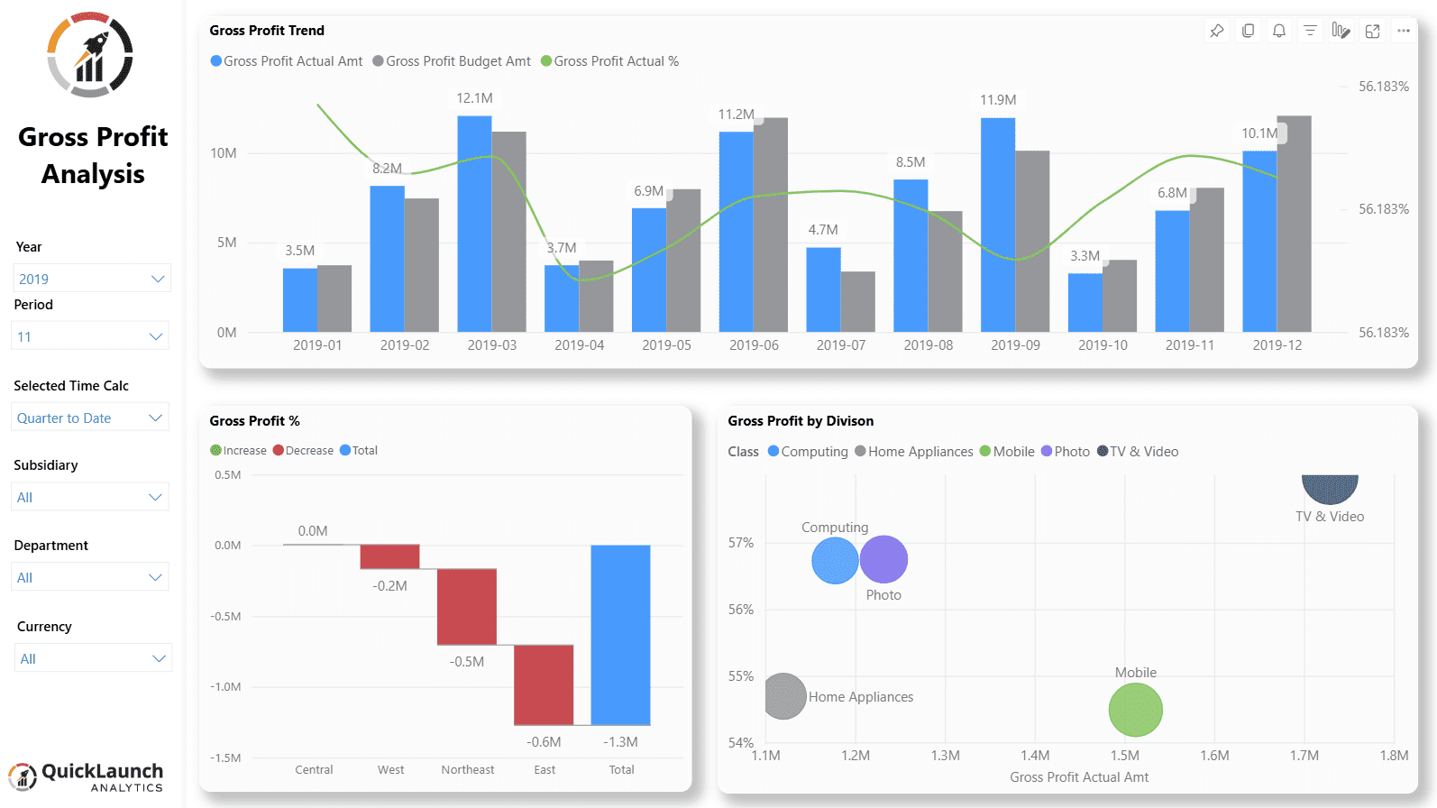Gain a complete understanding of your company’s financial health by analyzing balances and activity on the general ledger, including both actuals and budgets.